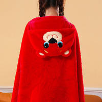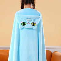 بطانية حمام من البوليستر للأطفال بطانية صوف بغطاء للرأس ناعمة للغاية مع قبعات حمل صلبة ونمط كرتوني